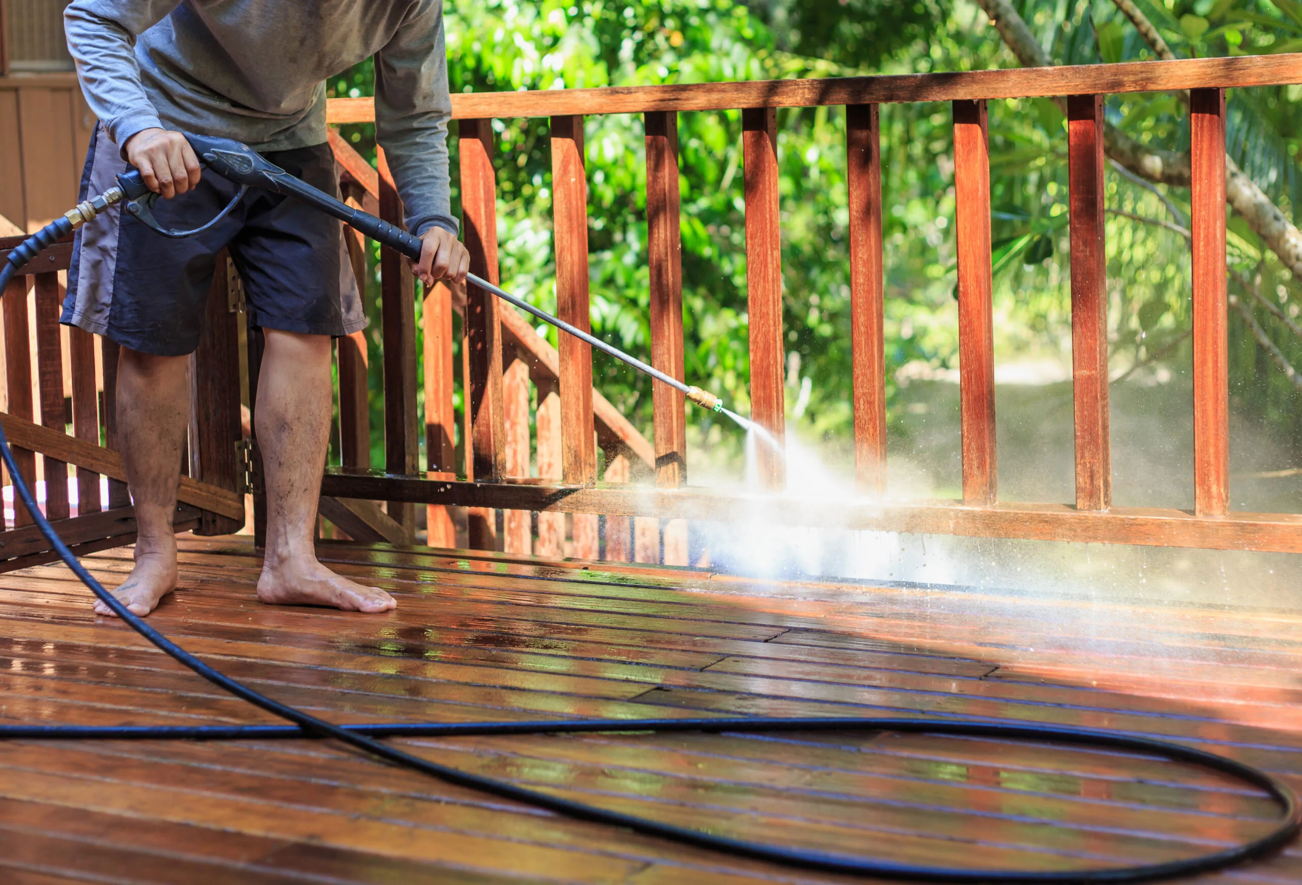 For the best outcome, prepare the deck before pressure washing. Begin by clearing out any furniture, vegetation, or other obstacles from the deck. Sweep out loose debris like dirt, twigs, or leaves. Scrub any large stains using a scrubbing pad or stiff bristle brush.